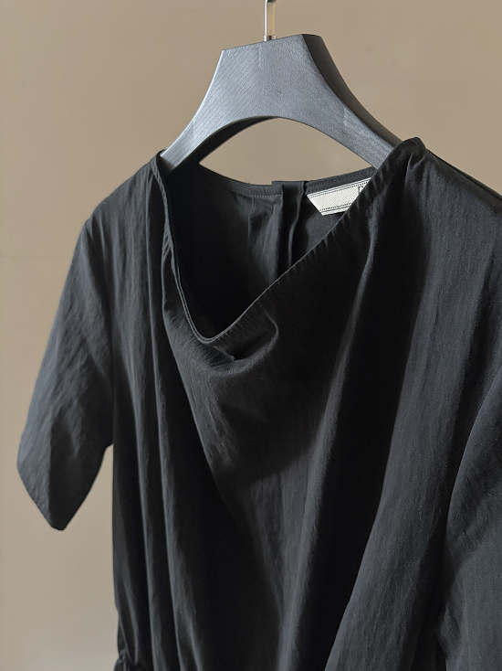在領口處做了微微低調的垂摺領(盪領)設計