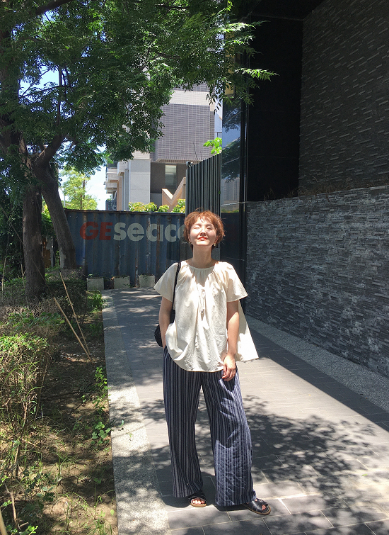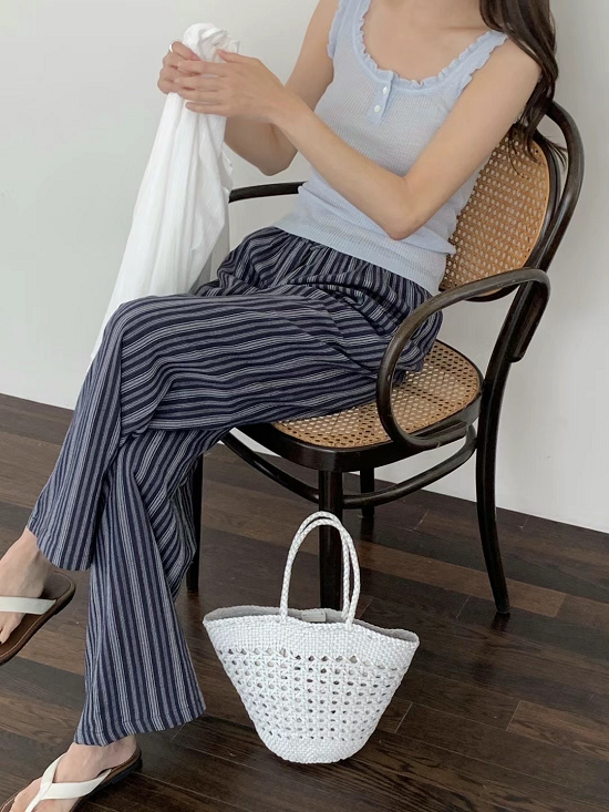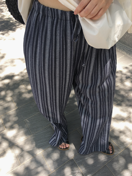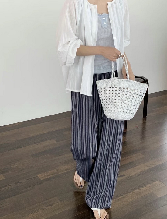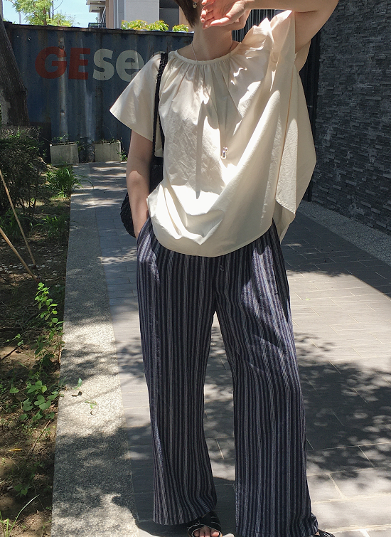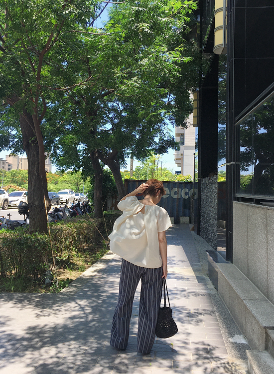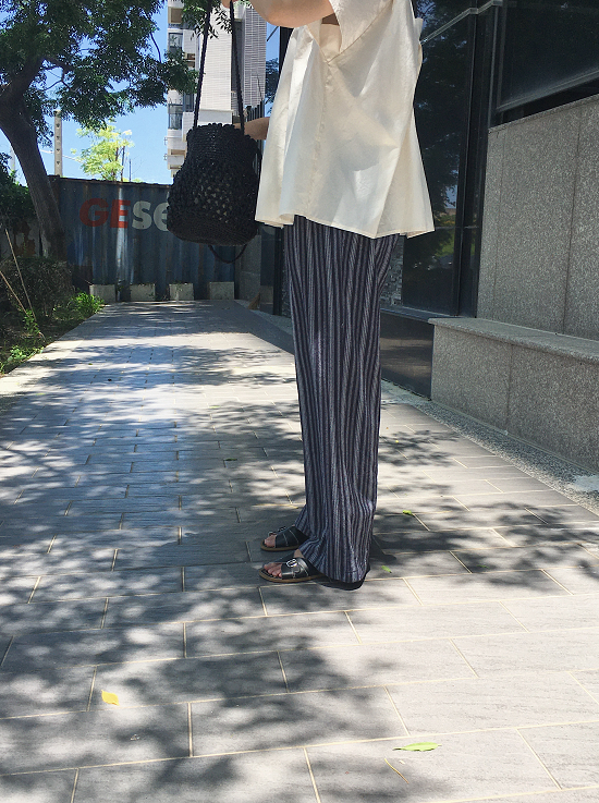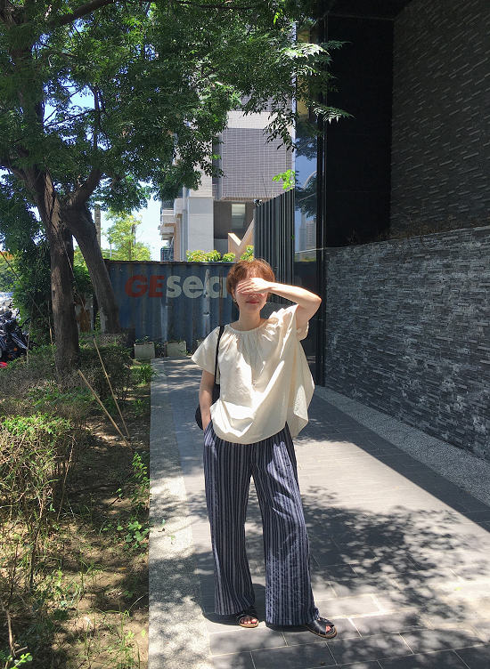 沒有太多黃感的米白配上黑灰黑灰的條紋