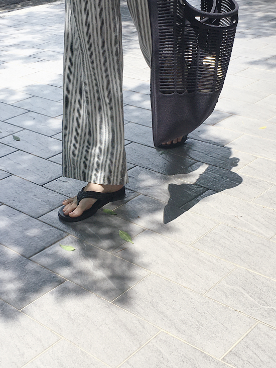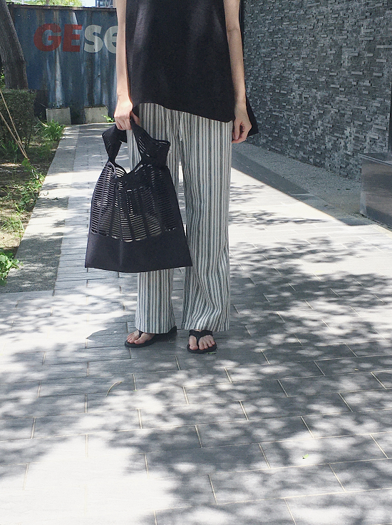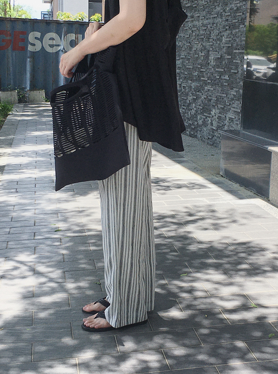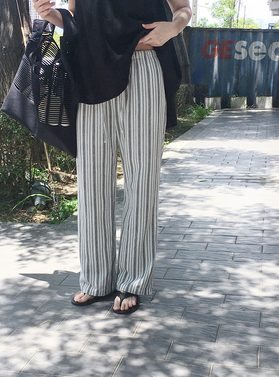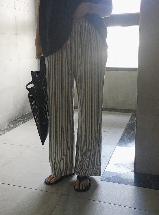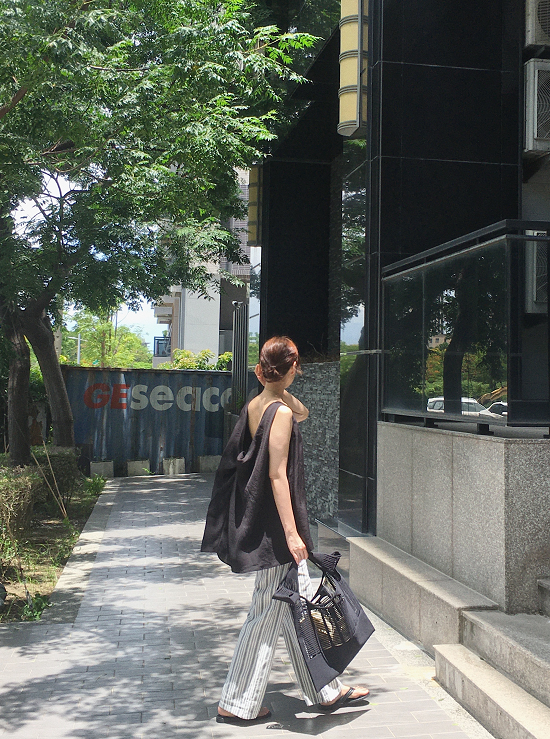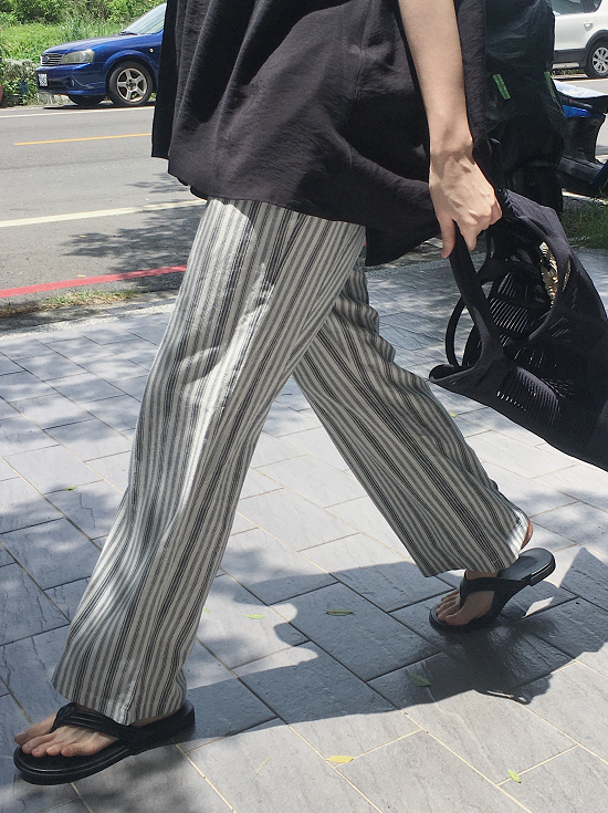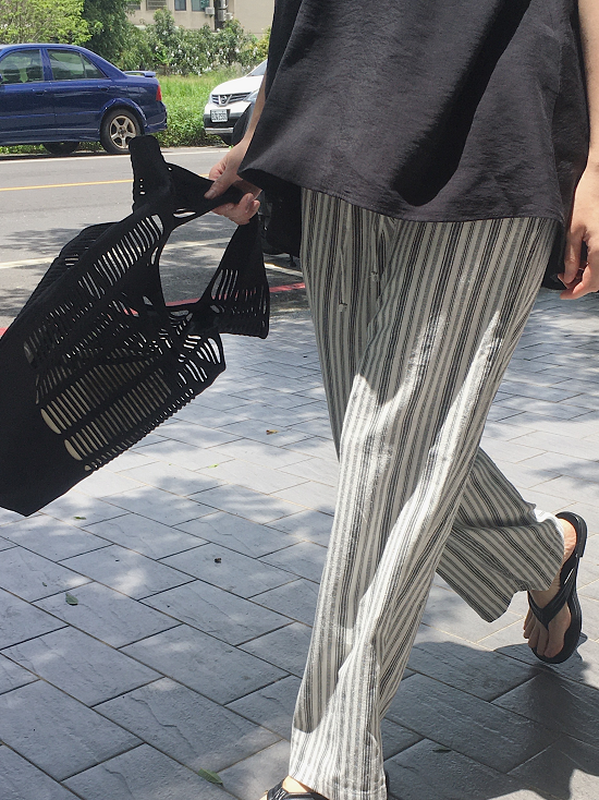 沒有太多黃感的米白配上黑灰黑灰的條紋