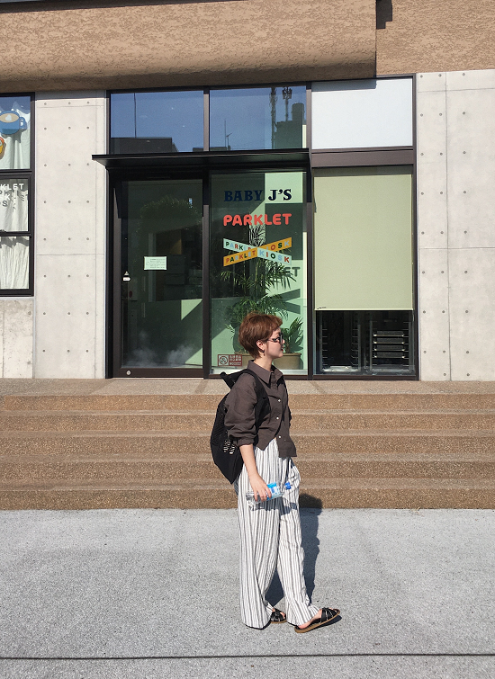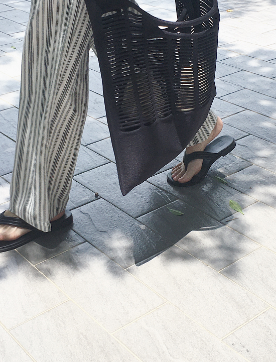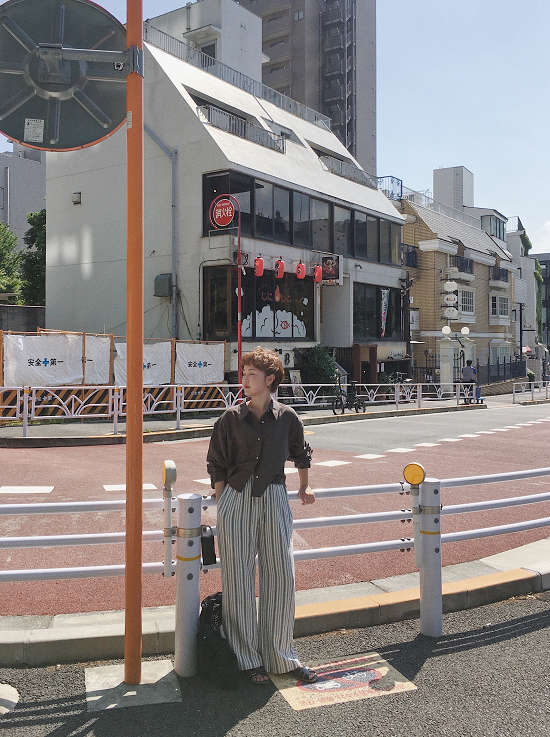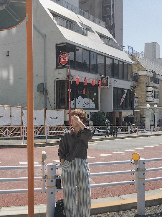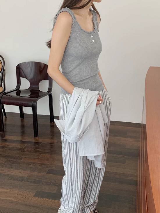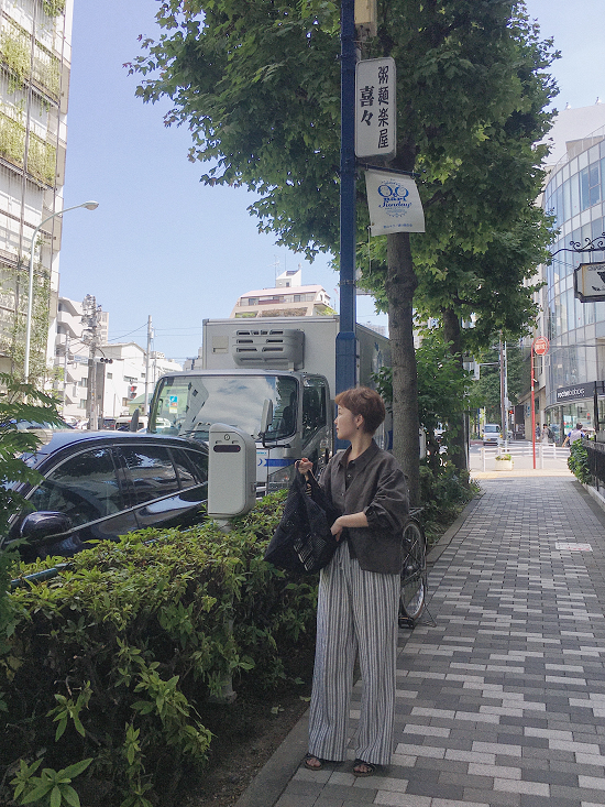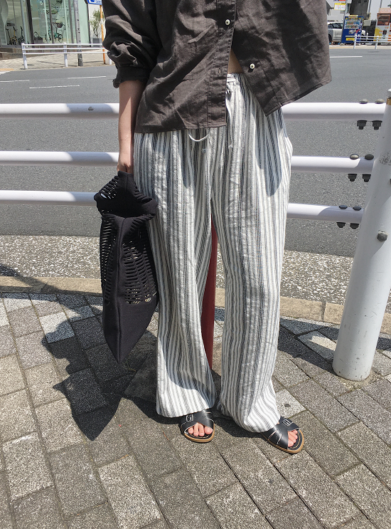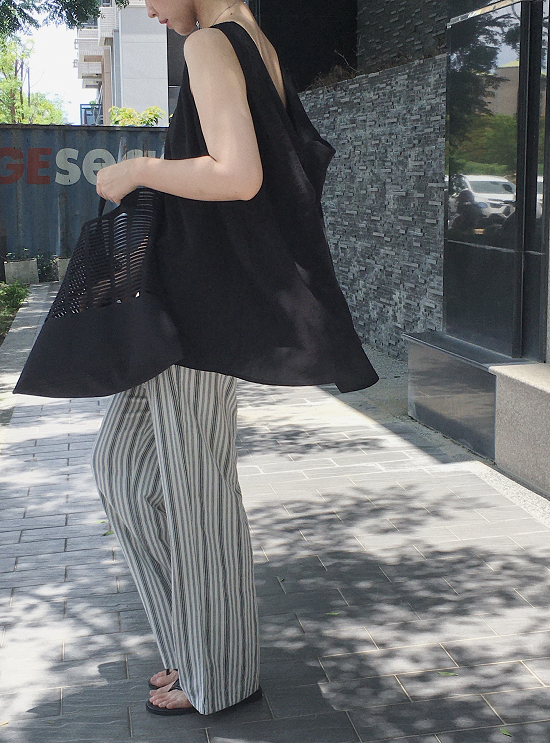 沒有太多黃感的米白配上黑灰黑灰的條紋