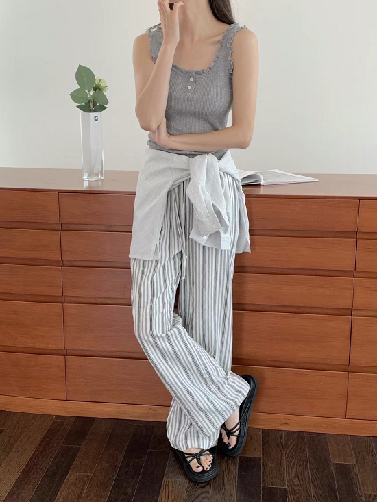 大約穿在肚臍位子的中腰基本直筒褲版