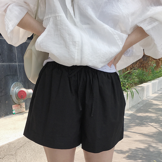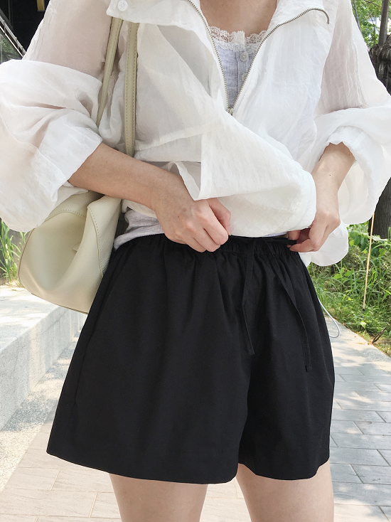 free size / 腰寬 28cm(鬆緊帶抽繩) 臀寬 50cm 褲襠27cm 褲管 34cm 總長 30cm