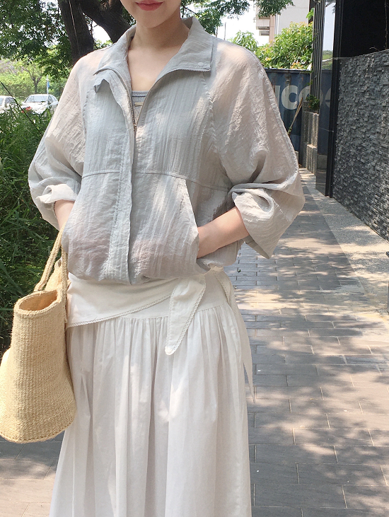 推薦!!(65%嫘縈)波光粼粼輕便薄夾克 - 灰藍綠