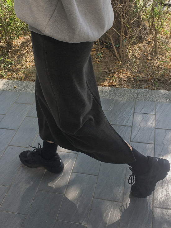 只有裙頭是彈性鬆緊的後岔H字直筒剪裁