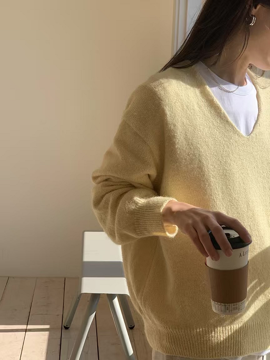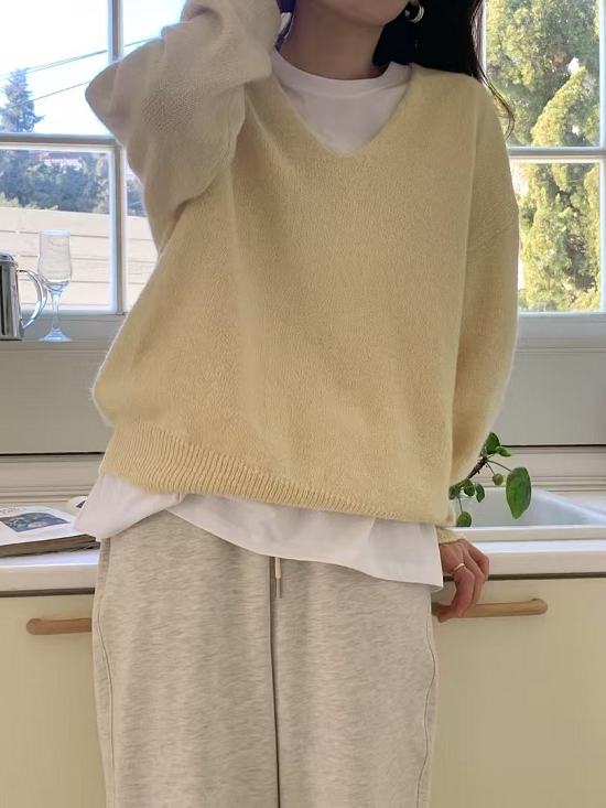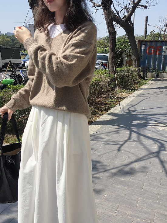 利用40%韓紙跟棉質混合製作的V領上衣