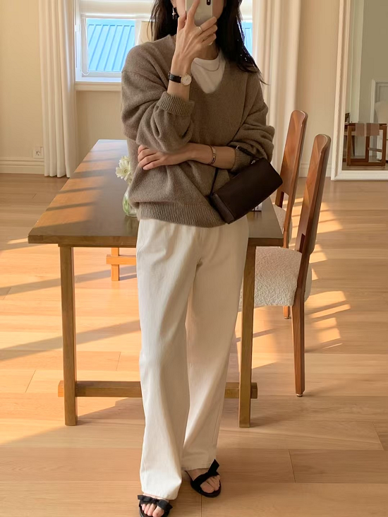可以透過內搭圓領素踢做出層次
