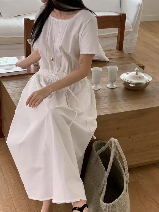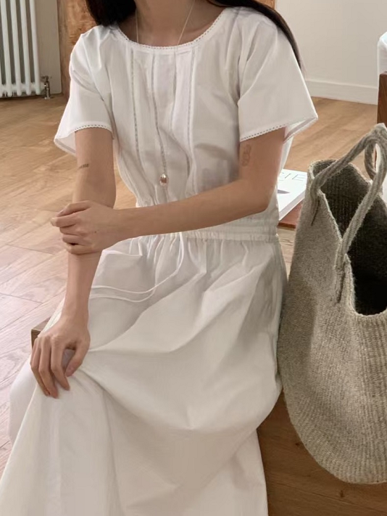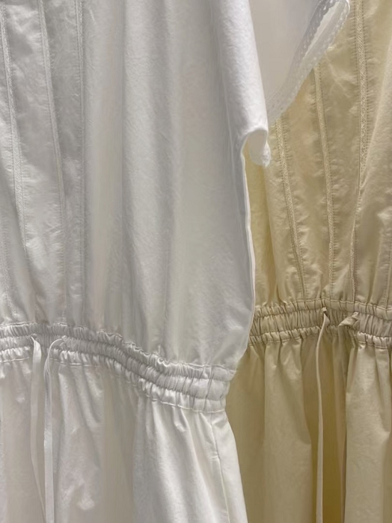 領口、袖口和裙擺是圓圈型蕾絲拼接
