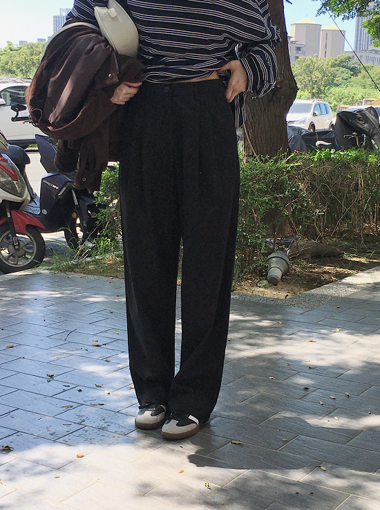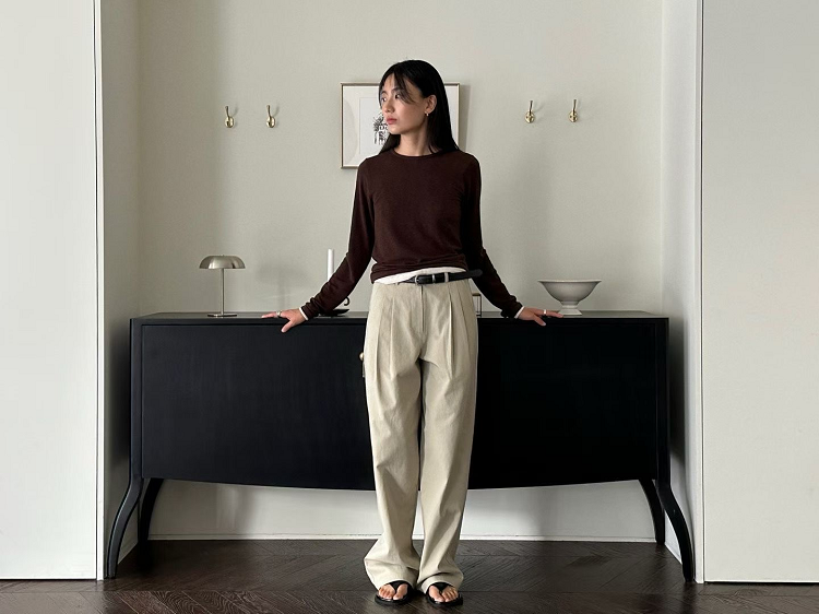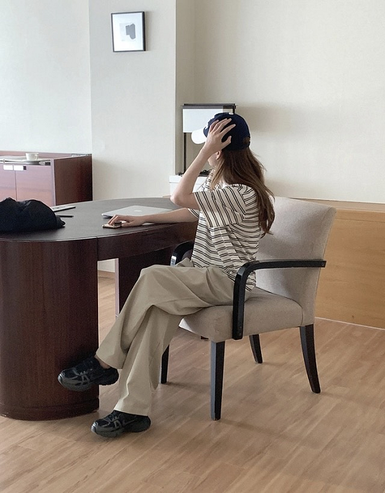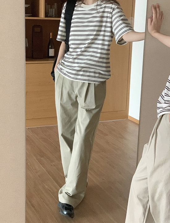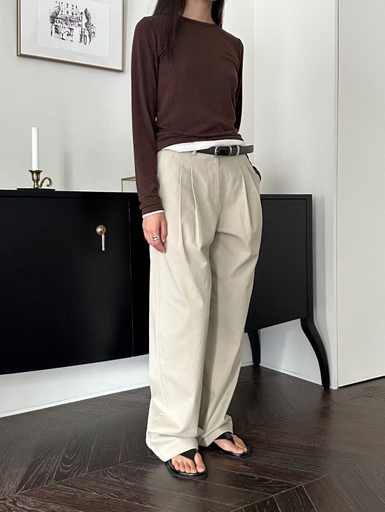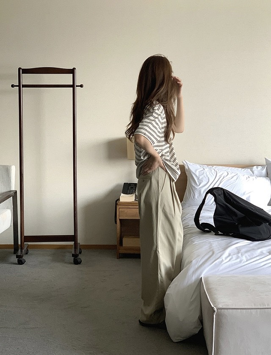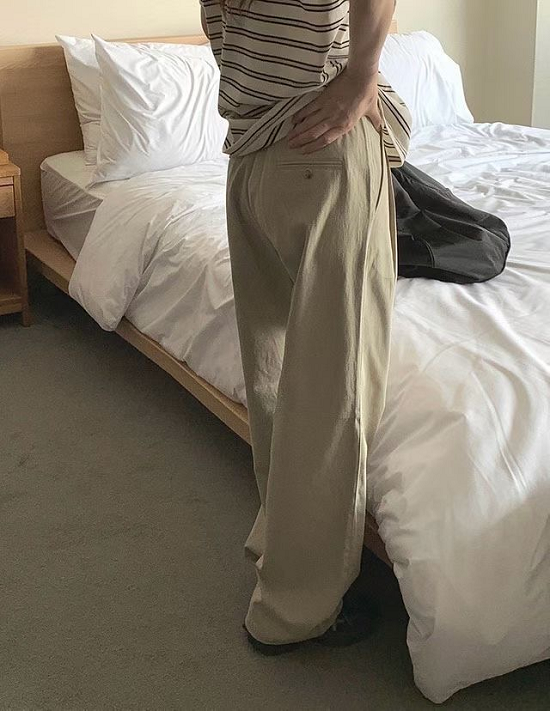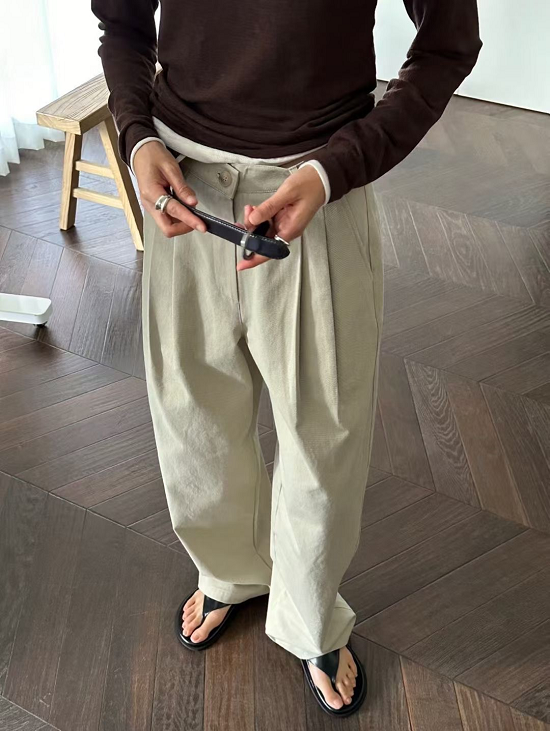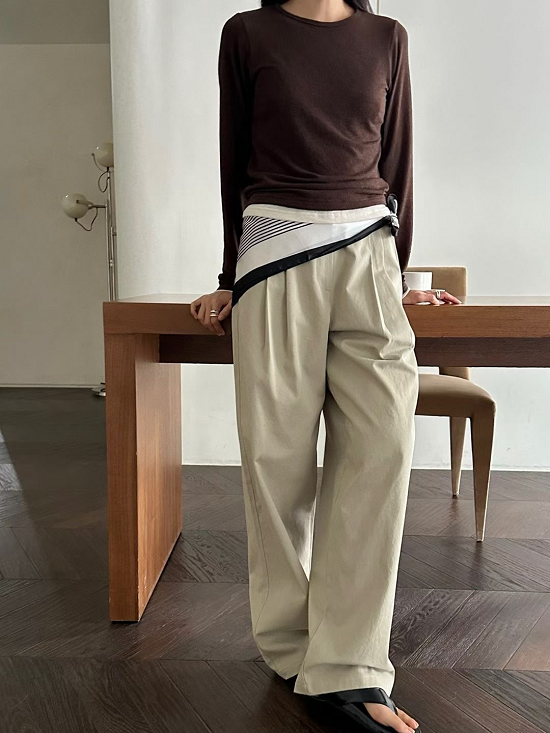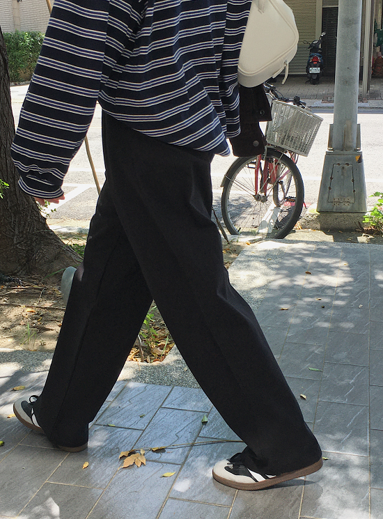 +大約穿在肚臍的中高腰寬鬆直筒褲版