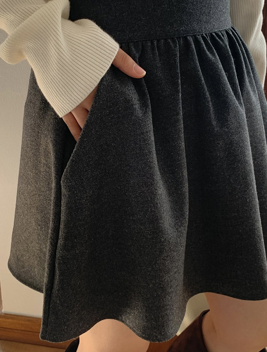 +腰部開始的抓皺讓裙子有自然傘裙澎度