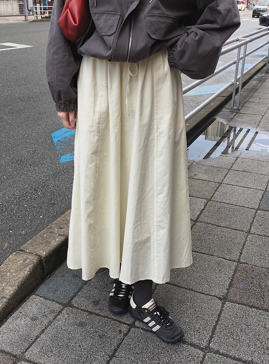 按照身型/喜好束緊後就會有A字傘裙的效果