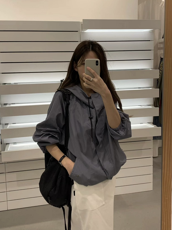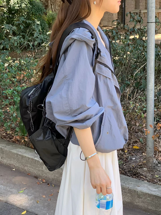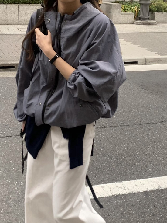 袖口鬆緊、下擺束繩、有壓扣口袋