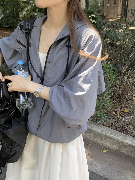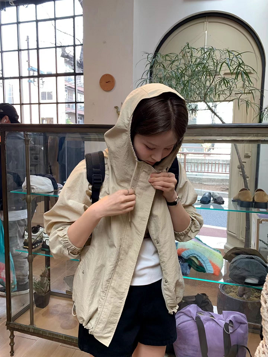沒有內裏、拉鏈+壓扣、帽子有束繩